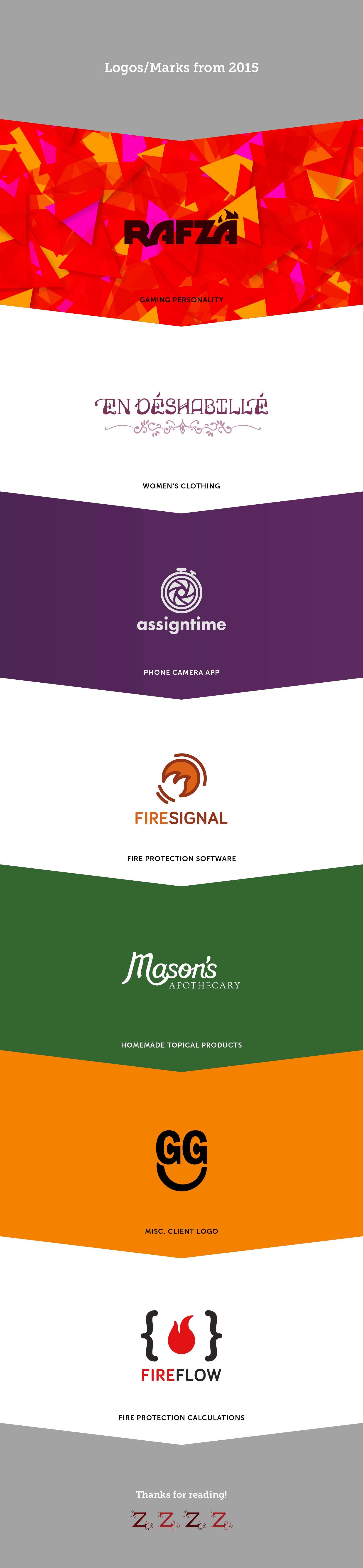 A collection of my logos and marks completed for various clients in the summer and fall of 2015.