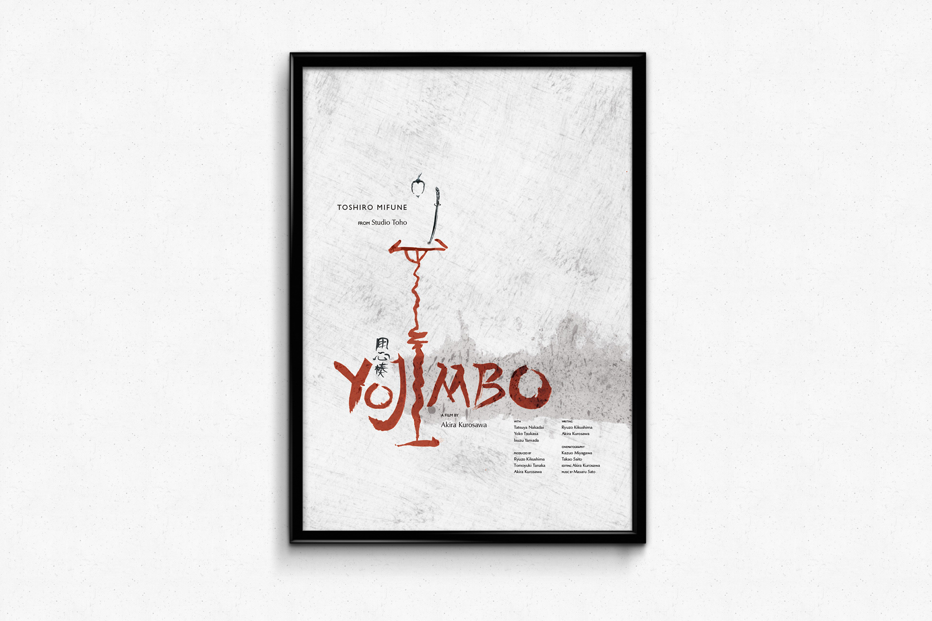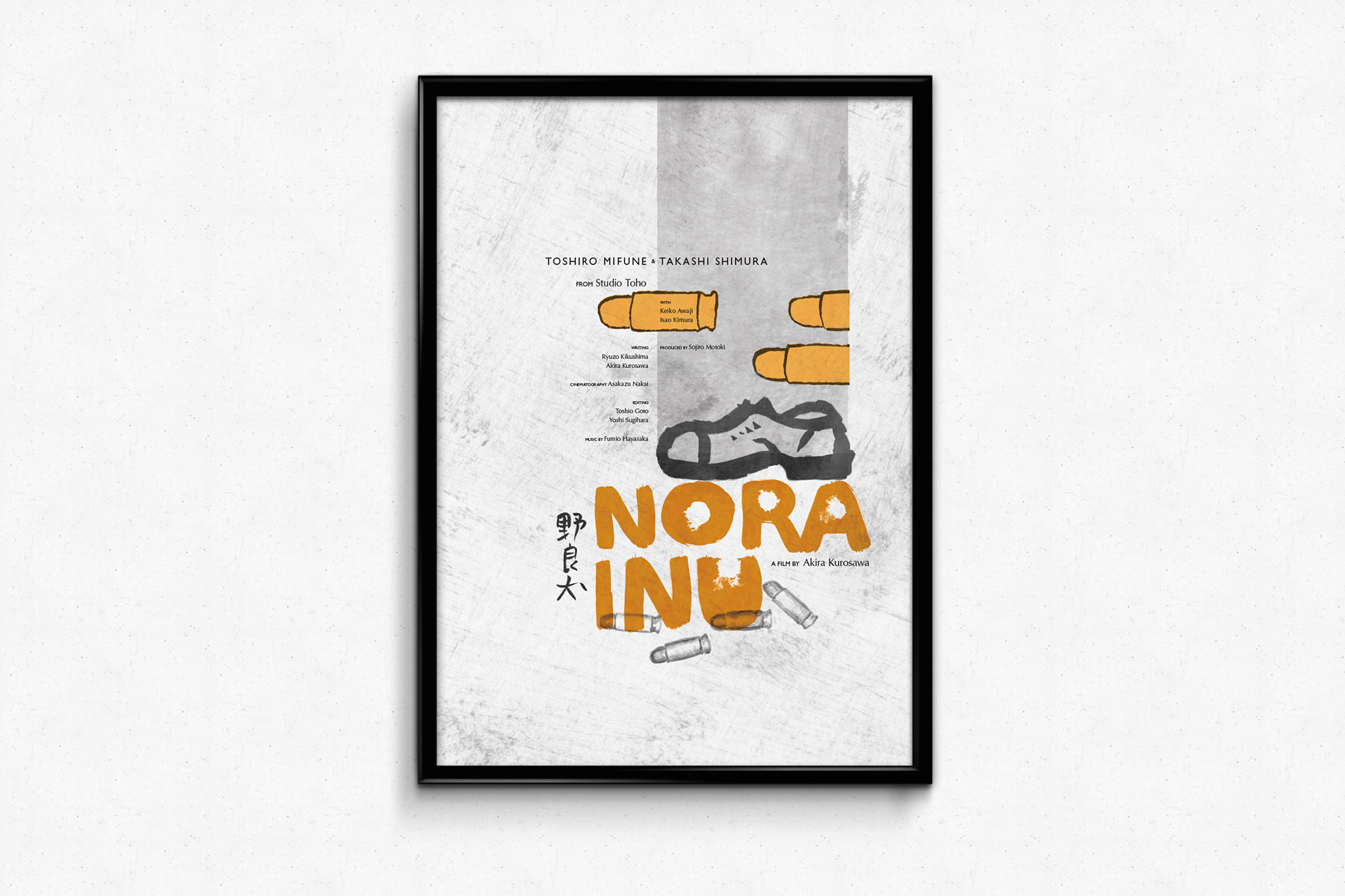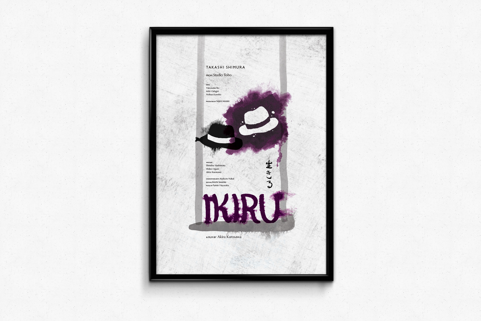 A series of re-imagined movie posters for Akira Kurosawa's 1961 Yojimbo, 1952 Ikiru, and 1949 Nora Inu featuring brush and ink illustration and lettering with digital collage. Made as a three-of-one family for project.